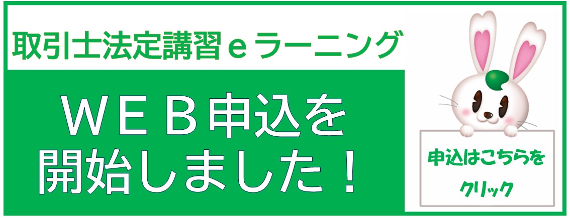 ※ こちらは取引士証の交付・更新に必要な取引士法定講習会のeラーニング受講になります。受講には事前申し込みが必要です。宅建業者が受講します法定研修会のeラーニングではございませんのでご注意下さい。
